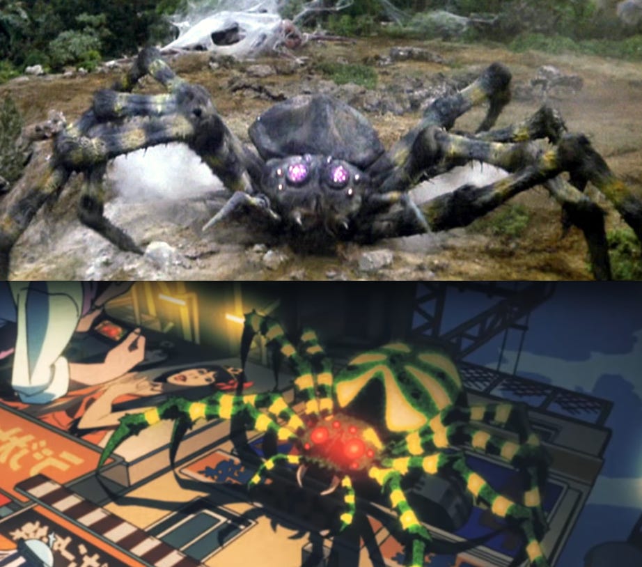 So why is it specifically the Showa incarnation of Sollgel Island's giant arachnid? The red eyes; Showa Kumonga's eyes turned red when agitated in Son of Godzilla (1967) and were permanently red in Destroy All Monsters (1969). The Godzilla: Final Wars incarnation’s blue eyes were static.
