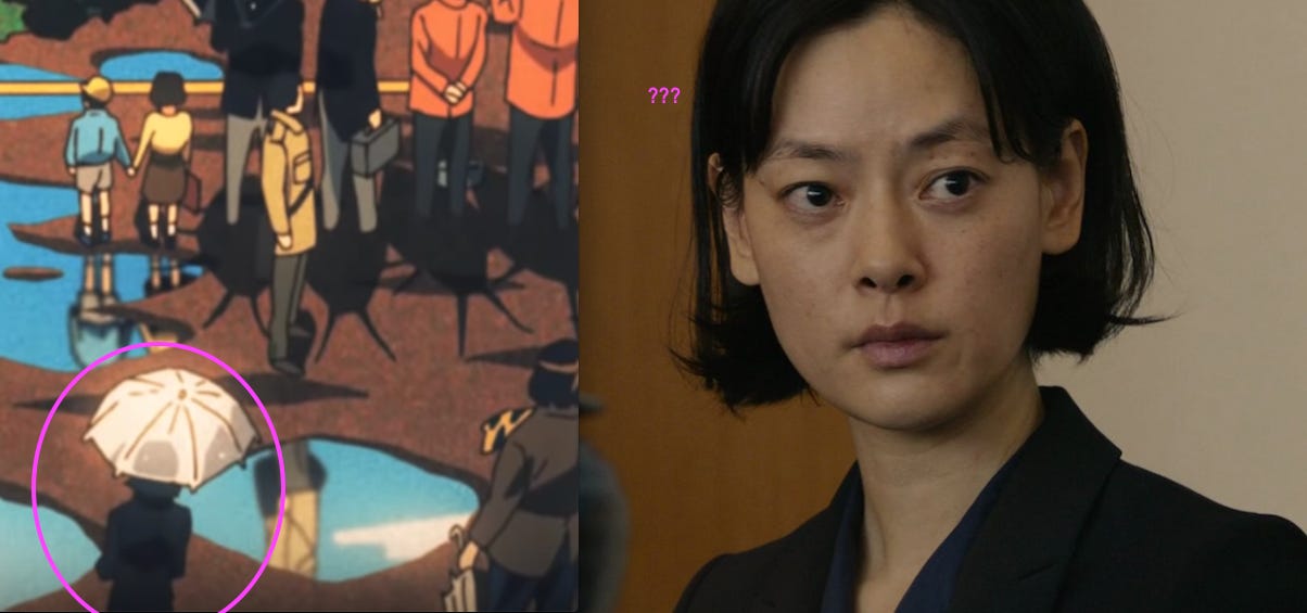 The Kiryu Saga references continue in the next frame as Mei closes up her umbrella.