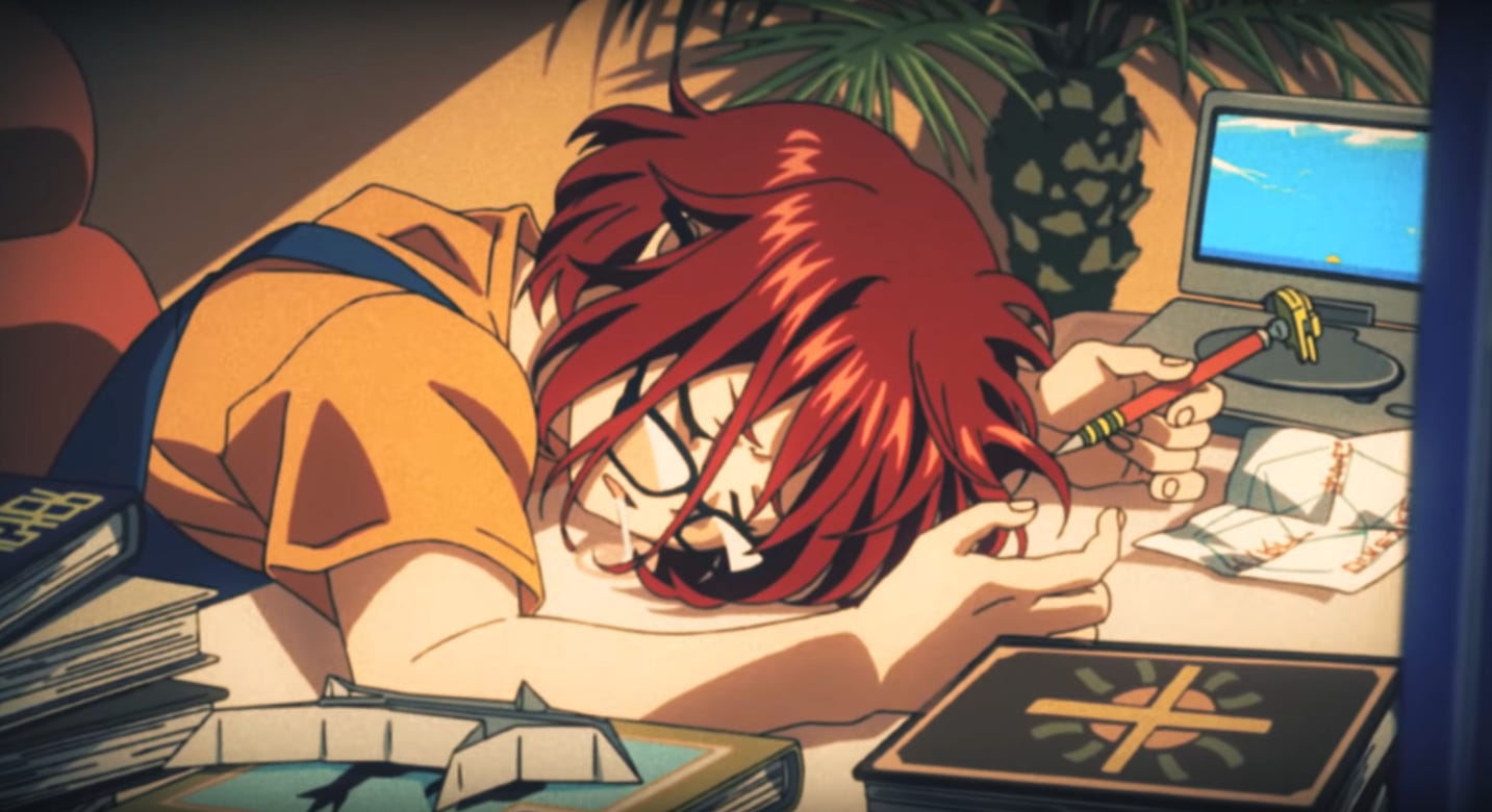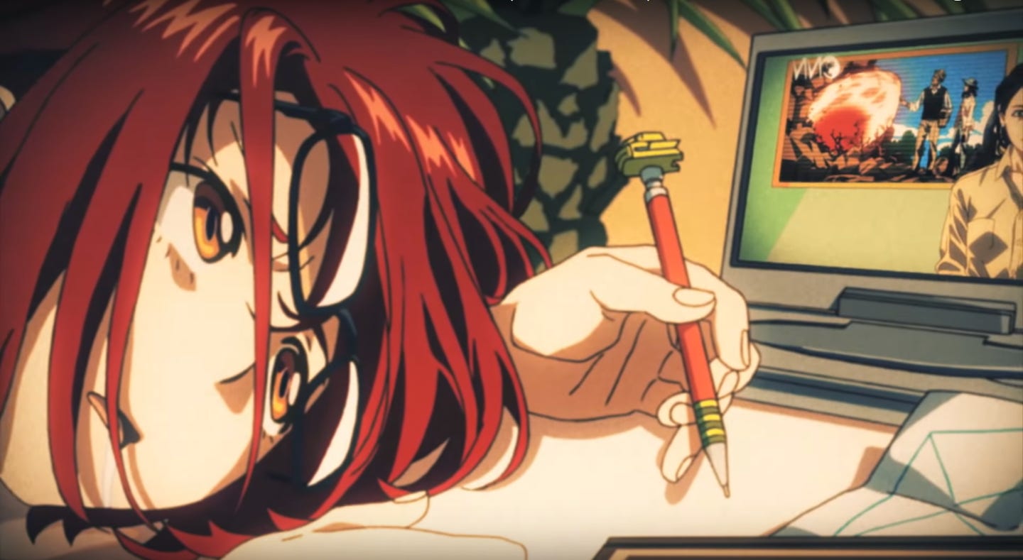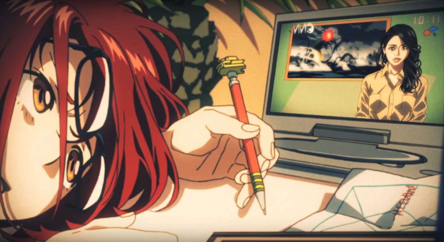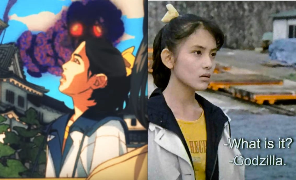 The entire end credits sequence centers around one of Singular Point’s main characters, Mei, as she wakes up on her desk from a night of studying. The TV is on and a book with Godzilla's silhouette sits next to her. There’s also another book just ahead of it. Look familiar?