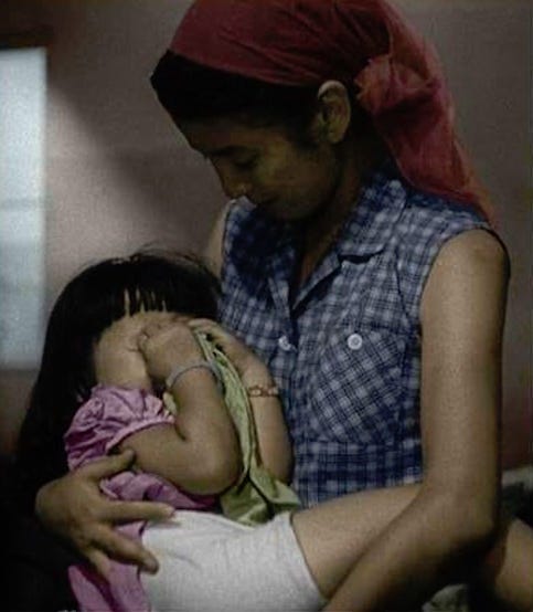 RED CIRCLE: Ichiro's friend, Sachiko must be one of the most obscure minor roles in the Godzilla franchise. Yet here she is, appearing twice. The yellow shirt and brown overalls give her away again.