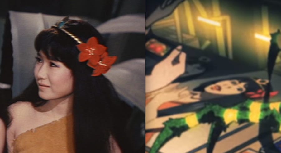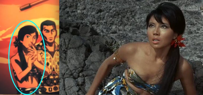 TEAL CIRCLE: A famous Kumi Mizuno role, Daiyo from Infant Island, watches on in shock.