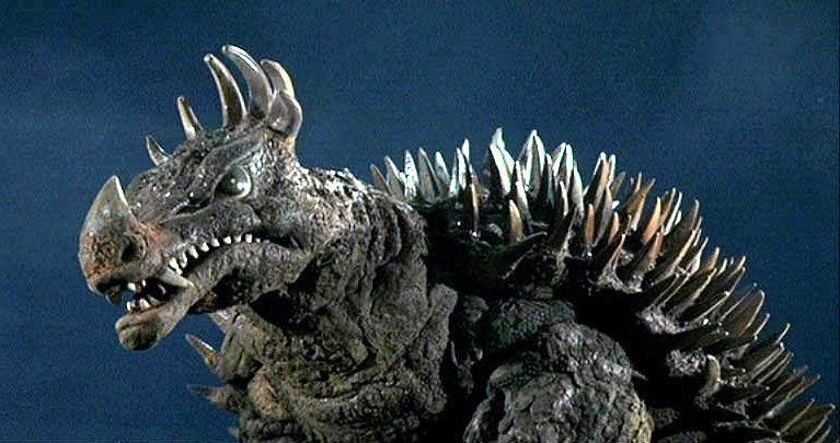 This one seems pretty obvious. What appears to be the 1968 design of Showa Anguirus burrows out of the ground for an attack.