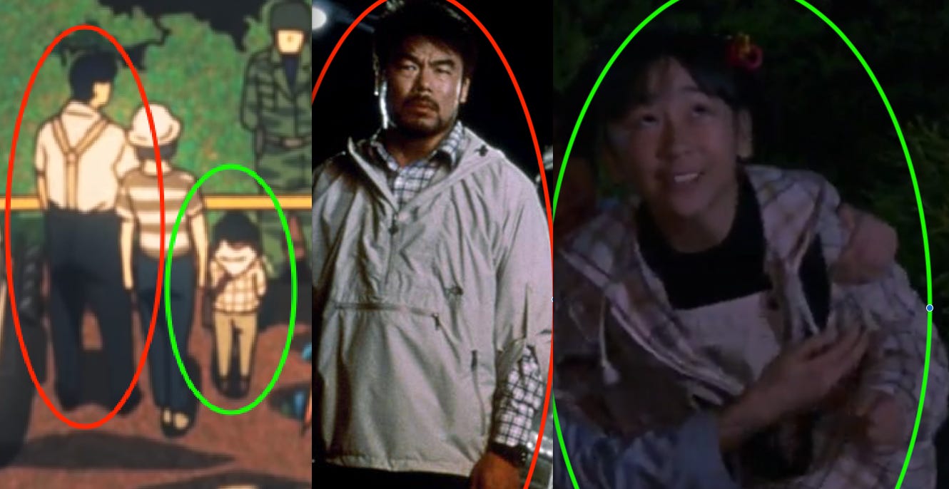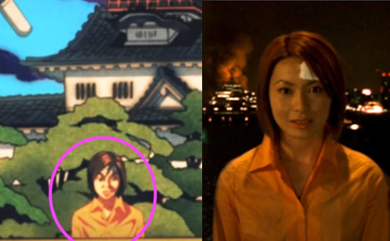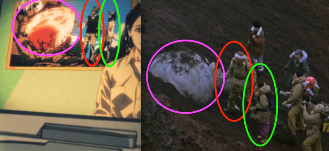 GREEN CIRCLE: Shinoda's daughter, Io, is there as well. Note she's wearing the same jacket seen in the climax of Godzilla 2000.