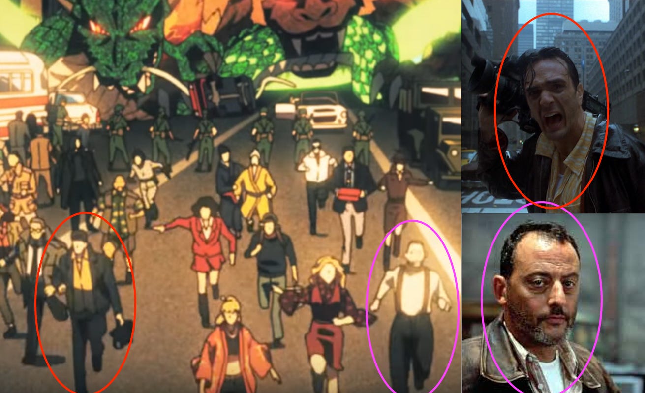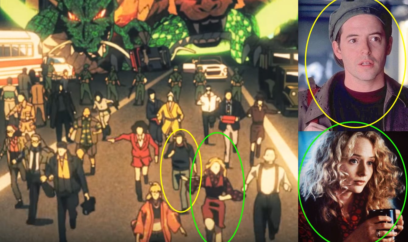 YELLOW CIRCLE: Yup, even the 1998 disaster gets referenced. Nick Tatopoulus, the worm guy himself, is spotted wearing the black shirt, red undershirt and hat he dons in the movie.
