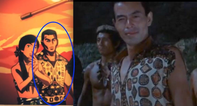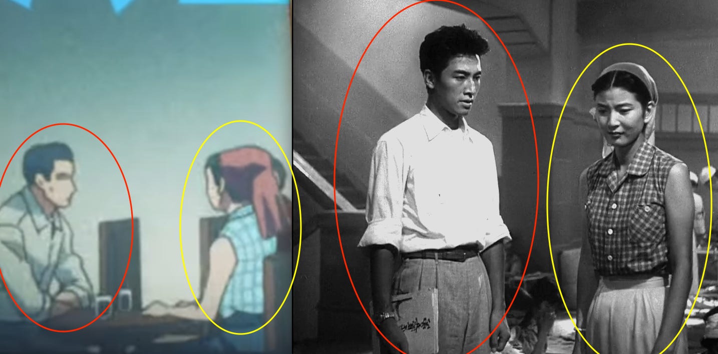 RED CIRCLE: How fantastic is it that the final homage next to Mei be the main characters from the original, 1954 masterwork? Hideto Ogata, with his rolled up sleeves sits opposite to the love of his life.
