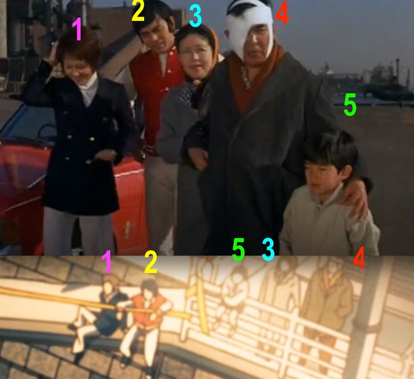 This was an easy one to put together since the entire cast is wearing the same attire in one shot. Although they are a bit close, making them harder to circle. Thus we move to numbers: