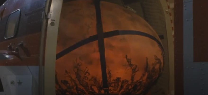 YELLOW CIRCLE: The red box? Notable for carrying the King Caesar statue the Black Hole Planet 3 aliens are after.