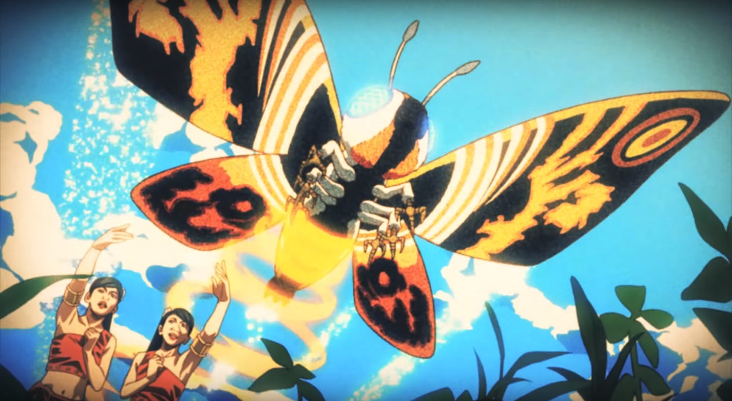 There's not too much in this frame and it largely speaks for itself. Mothra's flyby is accompanied by the Shobijin. But which incarnations are we looking at?