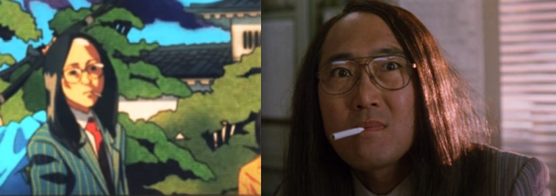 Yuri's boss, Haruki Kadokura, is seen hanging around with his usual pinstripe suit smoking a cigarette.