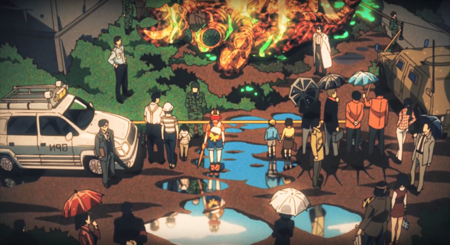 Rather than funneling fan service into story stopping moments that might leave casual audiences confused, Godzilla Singular Point usually ends on well earned cliffhangers that justify an end montage of fun Easter eggs. In some cases, the images treat obscure references like pop culture icons. In others, you need to tilt your head and squint before realizing what the animators have delivered.