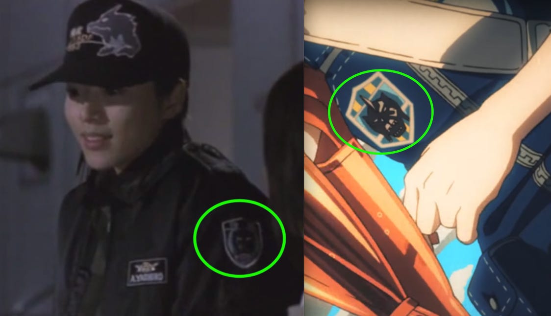 GREEN CIRCLE: Mei is wearing a Kiryu Squad patch seen on the squad jackets in Godzilla x MechaGodzilla.